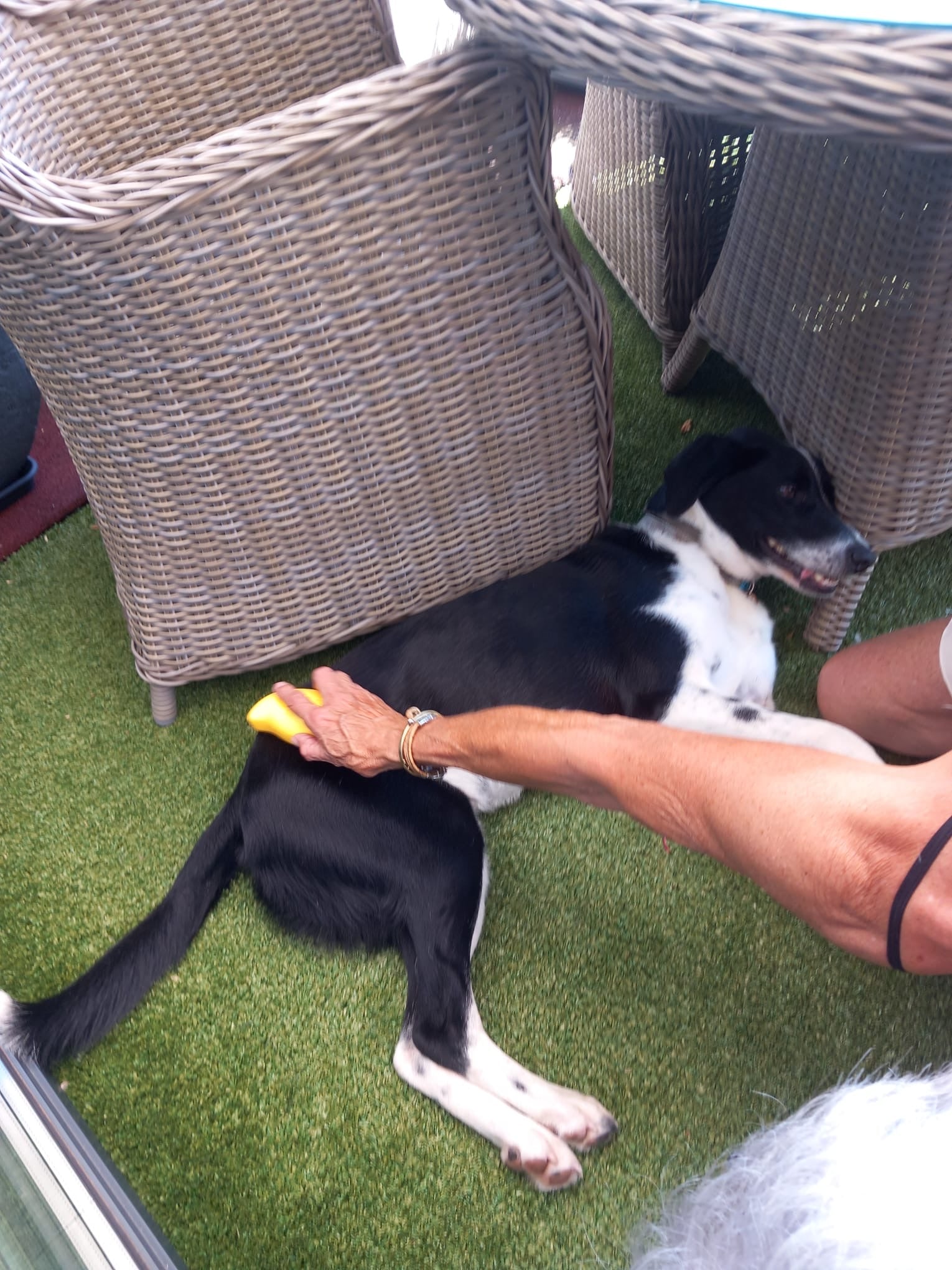 Steambrush bij Mivero gekocht, echt geweldig, je kunt tegelijk met het borstelen de vacht nat maken met deze borstel.De haren komen er gemakkelijk af en vliegen niet overal in het rond, de hond vind het heerlijk.